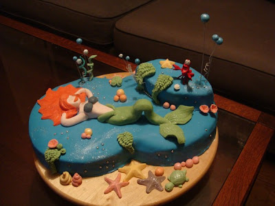 The third cake I've made -2008- This one Is made of Sugarpaste, Modelingpaste, Flowerpaste. Sebastian is the only non-eatable thing on thecake. I made him out of Pape-mache. Filling in this one was Strawberry mousse and White chocolate mousse.